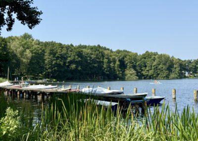 - Von Anfang Mai bis Ende Oktober stehen ein SUP und ein Ruderboot kostenfrei zur Verfügung. Beides muss in einem sauberen Zustand hinterlassen werden. Es kann optional ein E-Motor für das Boot dazu gebucht werden für 50€/Woche. Für fahrlässige Schäden haften die Gäste.
