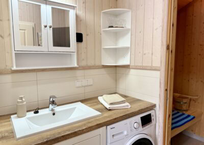 Im See Huus erwartet Sie eine harmonische Kombination aus Komfort und Naturverbundenheit. Die Fußbodenheizung sorgt ganzjährig für angenehme Wärme, während der Kamin an kühleren Tagen eine besonders gemütliche Atmosphäre schafft. Die hauseigene Sauna macht das Ferienhaus auch in der Nebensaison zu einem idealen Rückzugsort.