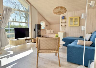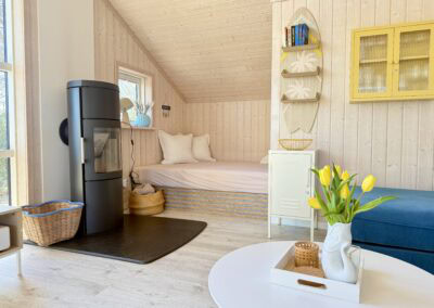 Das helle, modern eingerichtete Schwedenhaus bietet Platz für bis zu vier Personen und verbindet skandinavische Gemütlichkeit mit hochwertiger Ausstattung – ideal für Familien, Naturfreunde und Urlaub mit Hund in Mecklenburg-Vorpommern.