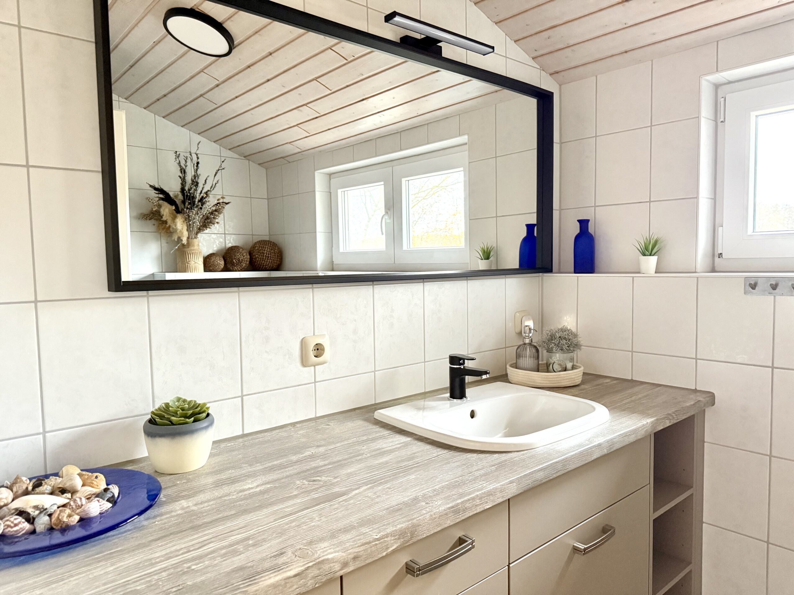 Für erholsame Nächte nach ereignisreichen Tagen stehen Ihnen im Ferienhaus Seeblick ein Schlafzimmer mit einem Doppelbett (180 x 200 cm), ein Schlafzimmer mit einem Queen Size Bett (160 x 200 cm) und ein Schlafzimmer mit 2 Einzelbetten (90 x 200 cm) zur Verfügung, sowie ein Schlafsofa (180 x 200 cm) auf der offenen Galerie. Von hier genießen Sie in den Wintermonaten mit einem guten Buch den Blick auf den See.